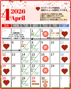 4月の営業日カレンダーNew!!