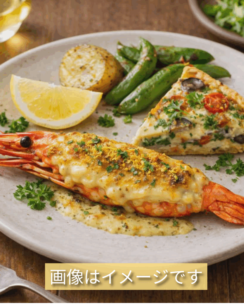 ●3月のホリデーランチコースは「有頭大海老のマスタードクリームグリル野菜キッシュ添え」です。